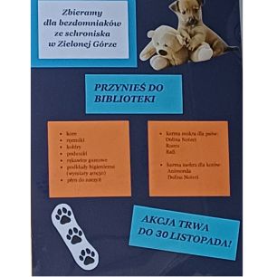 Biblioteka szkolna organizuje zbiórkę darów dla Schroniska dla Bezdomnych Zwierząt w Zielonej Górze.